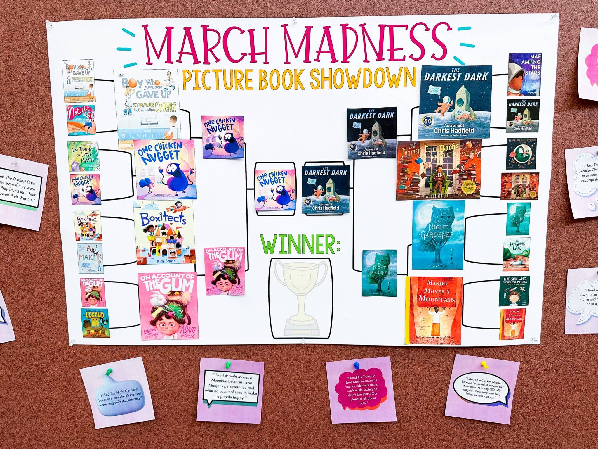 I'll be the first to admit that I am beyond sad that the Olympics are almost over, and I won't necessarily be watching any actual March Madness, but I WILL keep the competition theme going.... with a March Madness-style Picture Book Showdown!