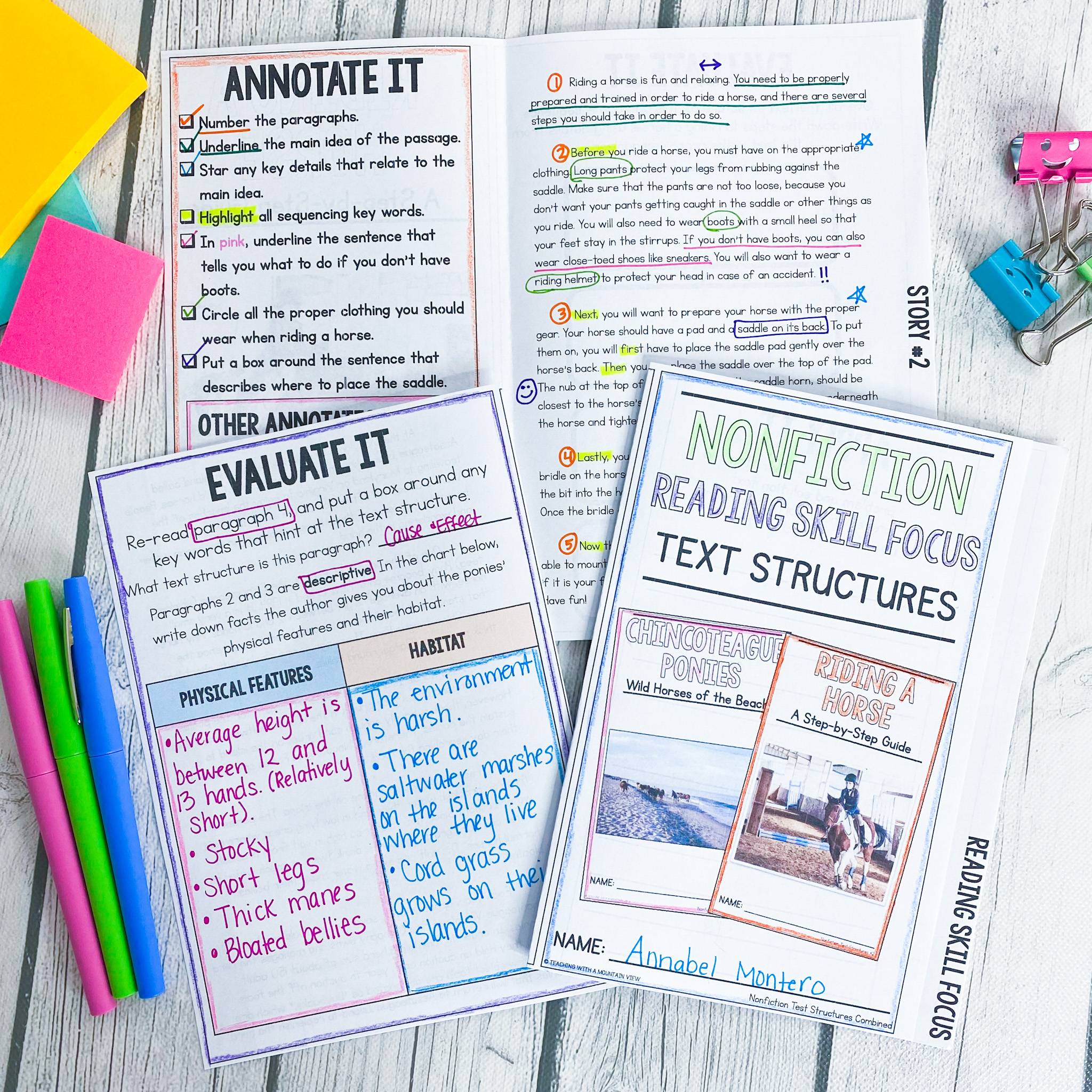 β’ Use one text for modeling annotating and the second for guided practice. Use the same colors for comparing similar elements across passages. β β’ Have students create a Venn diagram comparing a specific element or reading skill before answering questions or completing a writing prompt. β β’ Ask students to write one constructed response comparing both texts. This requires higher level thinking and has built in differentiation! β β’ Focus on one skill at a time (theme, authorβs purpose, text structure, point of view).